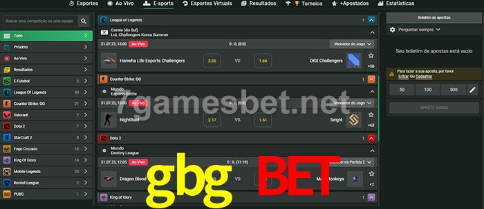 O gbg bet oferece uma grande seleção de opções de apostas em e-sports com probabilidades competitivas